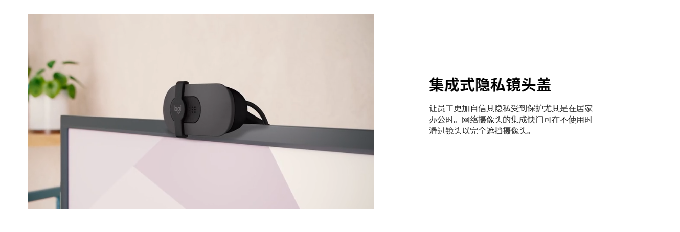 全高清 1080p 商用网络摄像头,具有自动光线平衡功能和集成式隐私镜头盖。